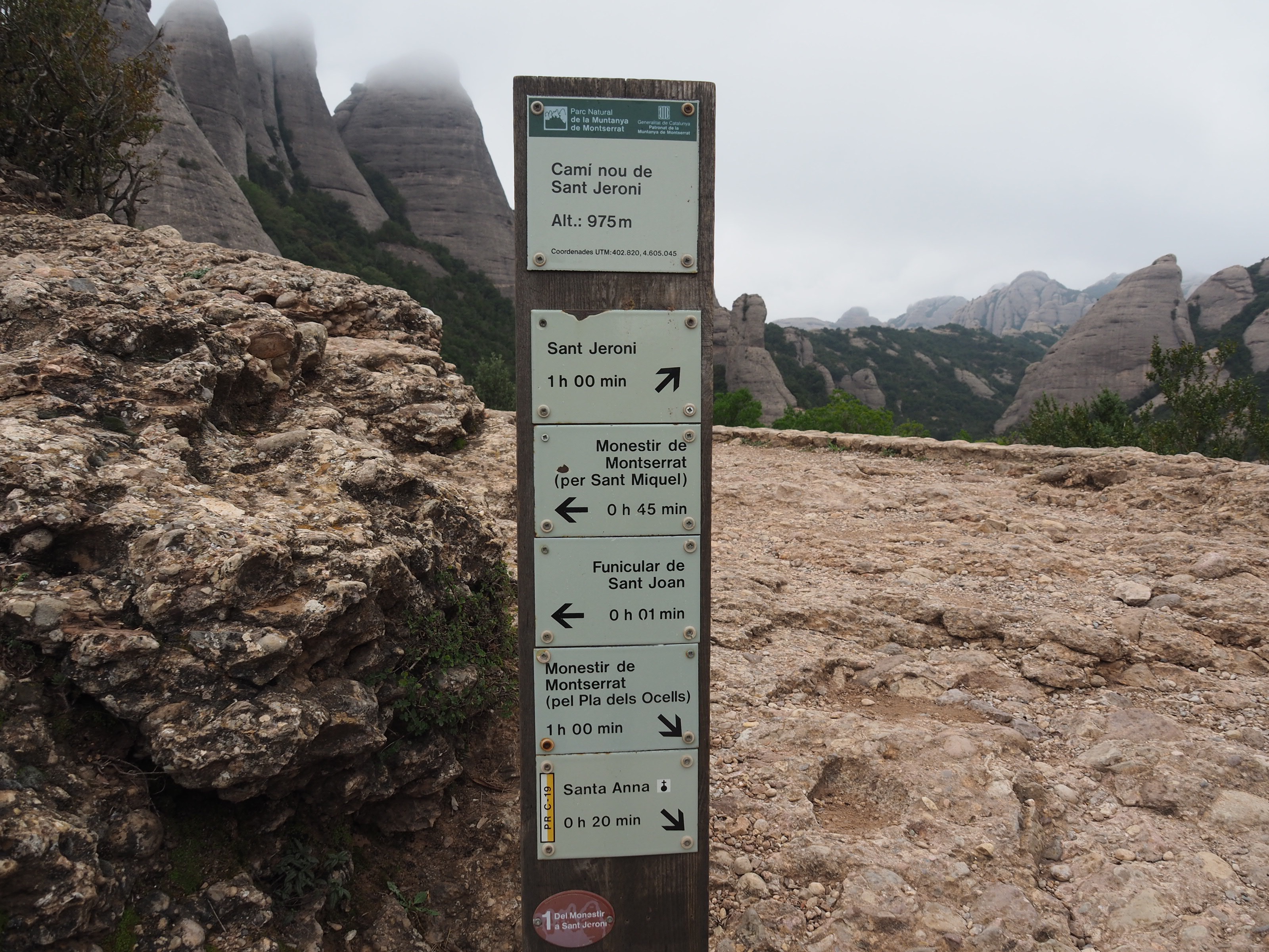 僕らはこちらで紹介されている、修道院からモンセラットで一番高いサン・ジェロニ Sant Jeroniに登るルートを歩きました。紹介ルートでは、下山時はケーブルカー(フニクラー)を利用する案内(約7キロ)となっていますが、僕らはケーブルカーの山頂駅を通り過ぎそのまま歩いて修道院までおりました(約11キロ)。
